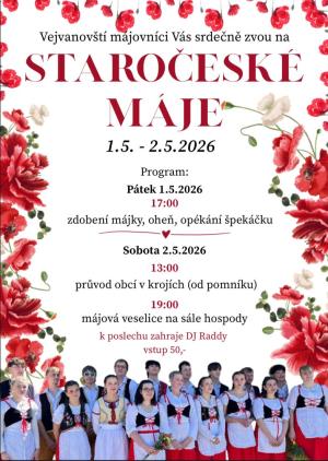 Vejvanovští májovníci srdečně zvou na STAROČESKÉ MÁJE 1.5 - 2.5.2026.